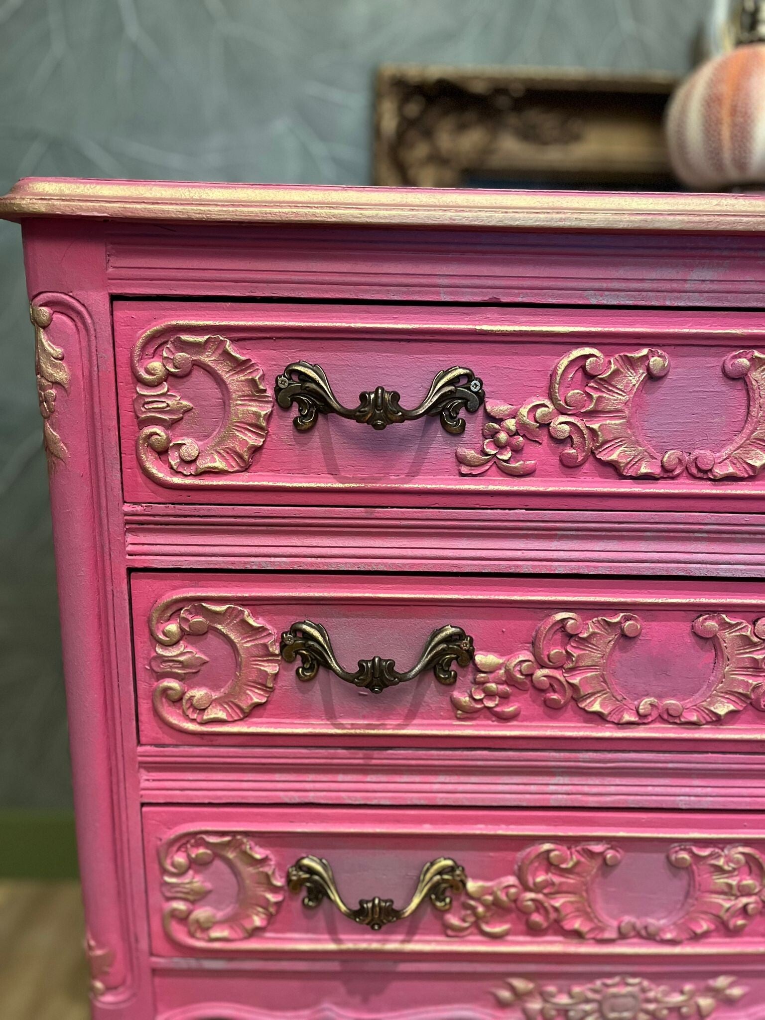 We konden geen beter passende naam voor haar verzinnen dan dit want deze rijkelijk bewerkte ladekast met al haar rondingen is een echte dame.
