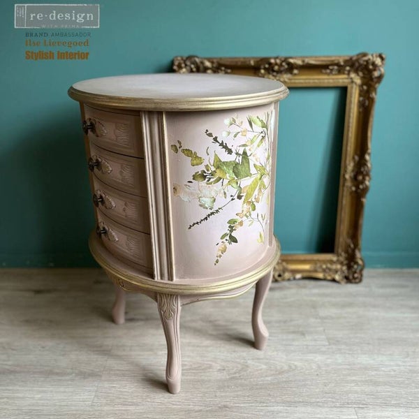 Deze weelderige kleine dame heeft een grootste uitstraling door haar zachte kleuren in combinatie met prachtige poederachtige bloemen die rondom zijn aangebracht en de bijna mat gouden details.