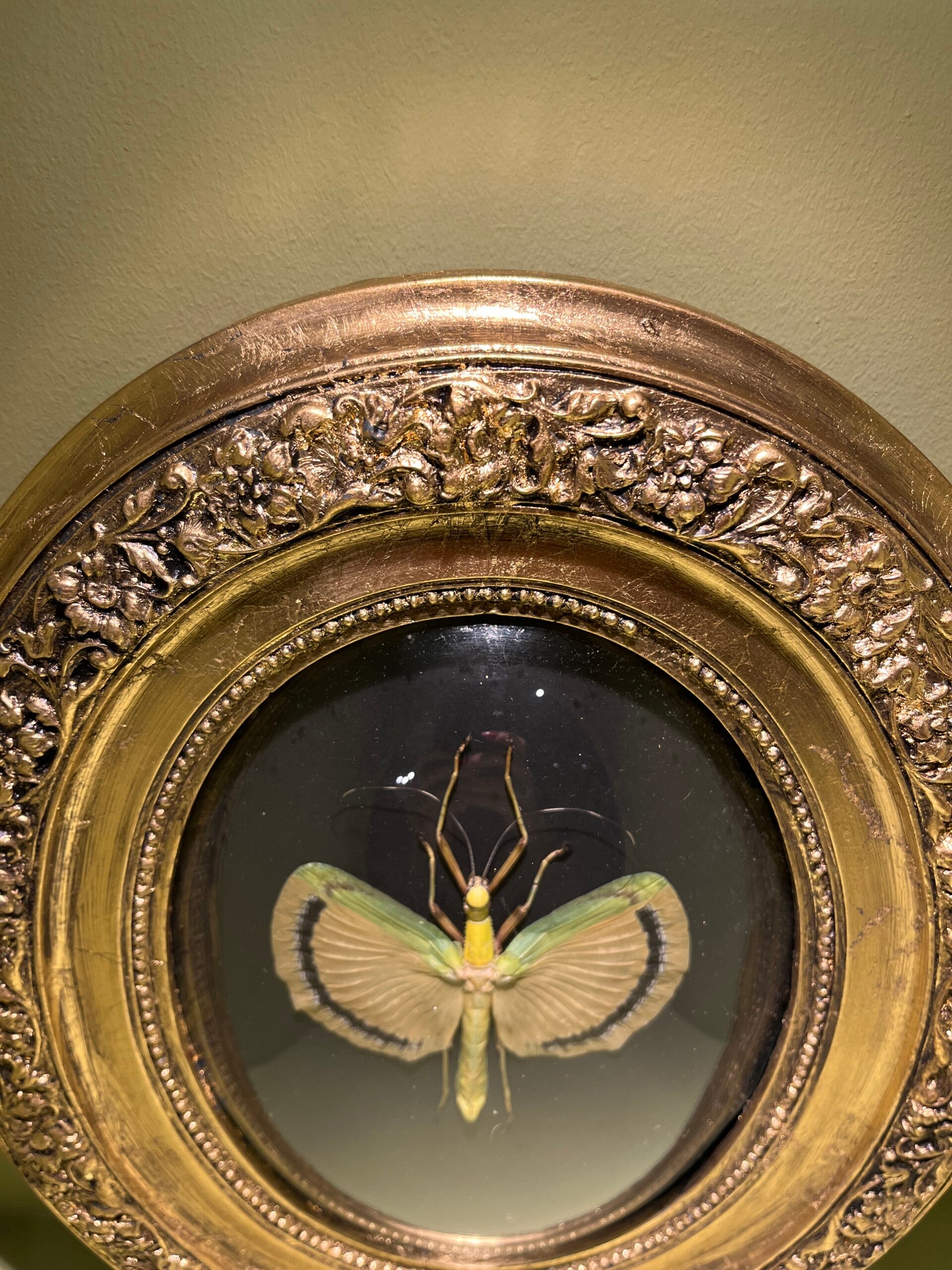 Elk insect in onze collectie is zorgvuldig geselecteerd en met vakmanschap opgezet om de details van hun vleugels, kleuren en patronen nauwkeurig weer te geven. De opgezette insecten zijn als stille getuigen van de schitterende diversiteit en complexiteit van de insectenwereld, vastgelegd in een prachtige vintage lijst met bol glas, gevonden tijdens onze zoektochten . Dat alles komt samen in een verbluffende weergave van natuurlijke weelde die hun schoonheid accentueert.