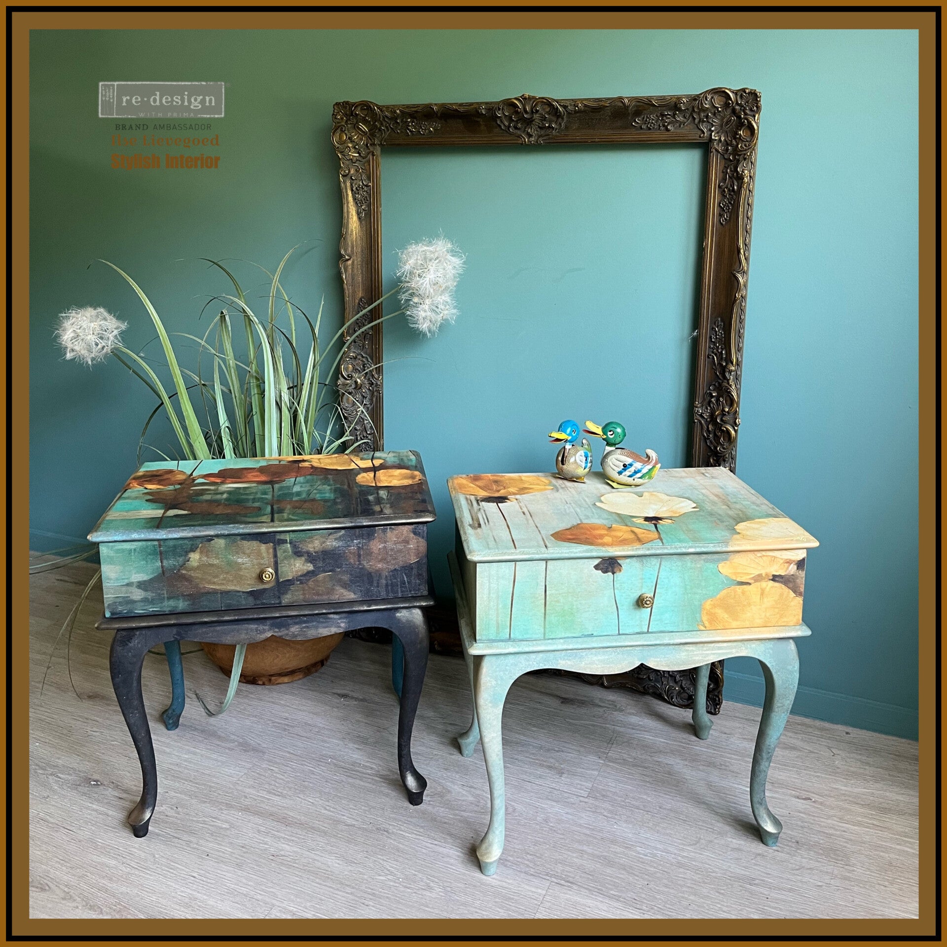Deze elegante nachtkastjes zijn geschilderd in heel veel verschillende kleuren van zwart naar koper met tinten azuurblauw, goudgeel en zacht wit. De prachtige lotusbloemen staan ter betekenis voor de transformatie van duister naar licht en van dit mooie setje nachtkastjes heb ik er 1 geschilderd in donkere duistere kleuren en de andere in lichte kleuren. Die stellen het proces voor van spirituele groei van de ziel en de reis naar verlichting . Samen zijn ze het symbool van een nieuw begin, wat een heerlijk begin van je dag als je naast deze kastjes wakker wordt!