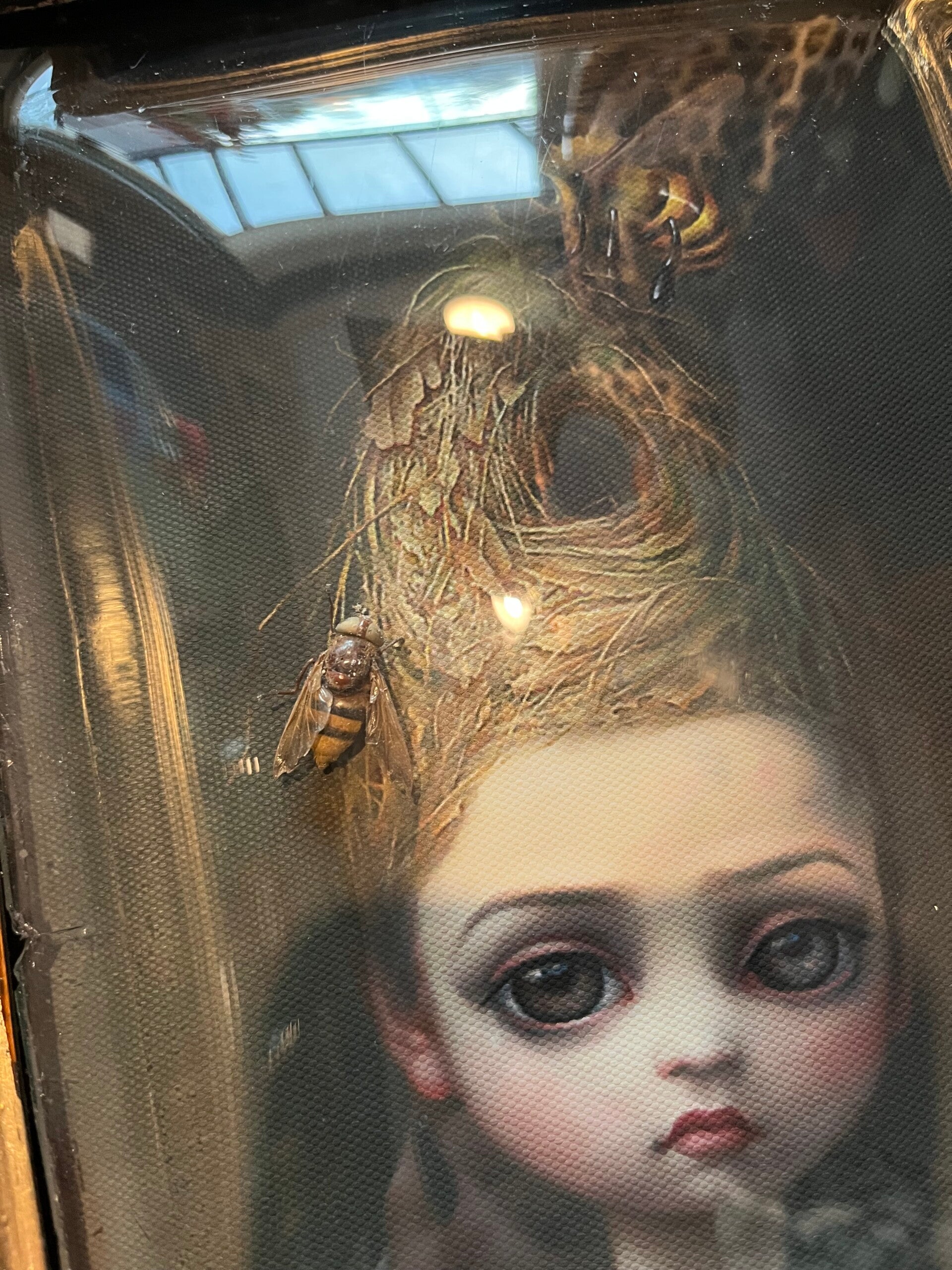 De bijenkoningin in haar volle glorie heeft natuurlijk ook echte bijen om haar heen!