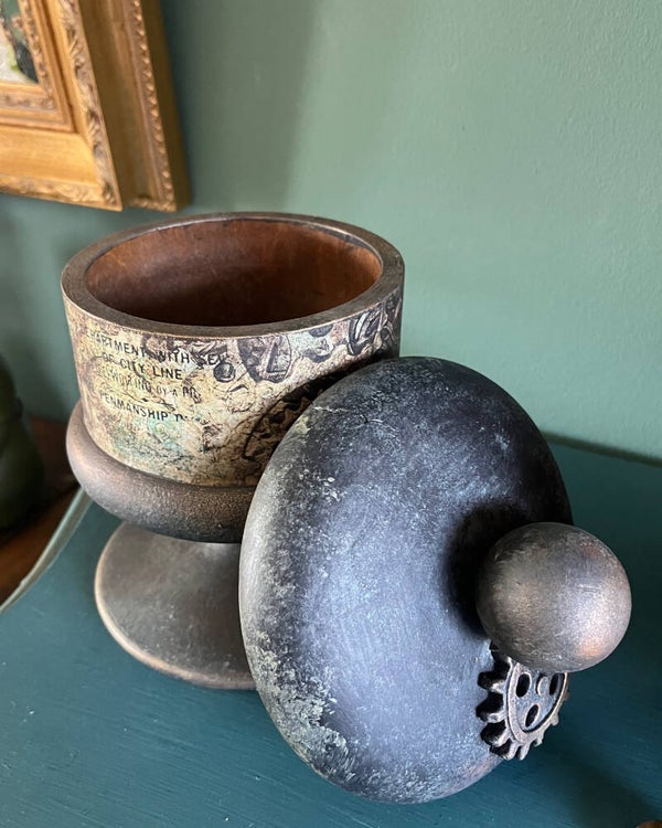 Dit antieke bolle bakje straalt helemaal steampunk vibes uit met