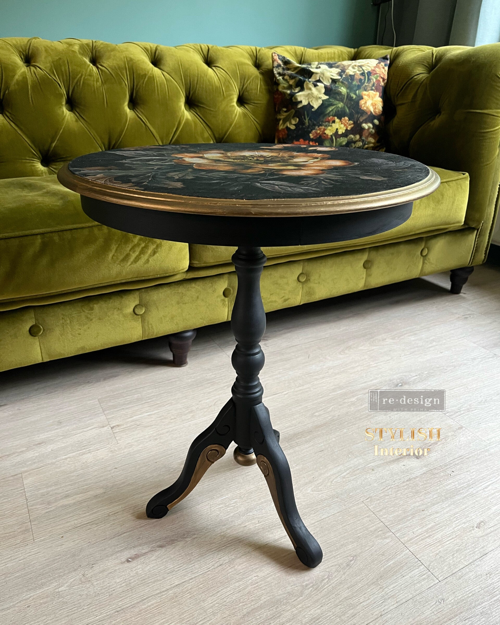 Het tafeltje is hoog 60 cm en de diameter is 49 cm
