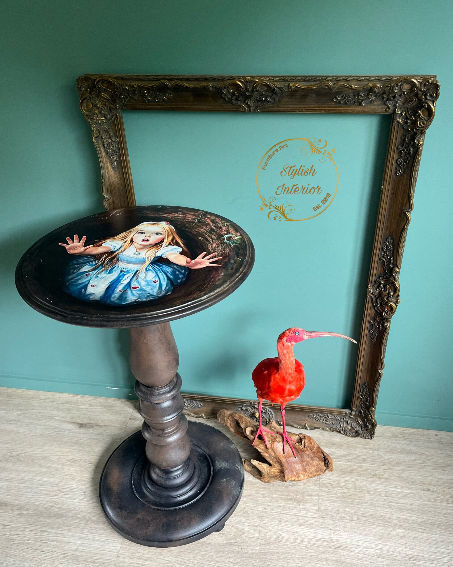 Deze hoge bruine bijzettafel is alsof ‘ie zó uit Alice in Wonderland is komen wandelen. Denk aan theekransjes, geheimzinnige gangen en een vleugje vintage magie. 🫖🕰️🐇