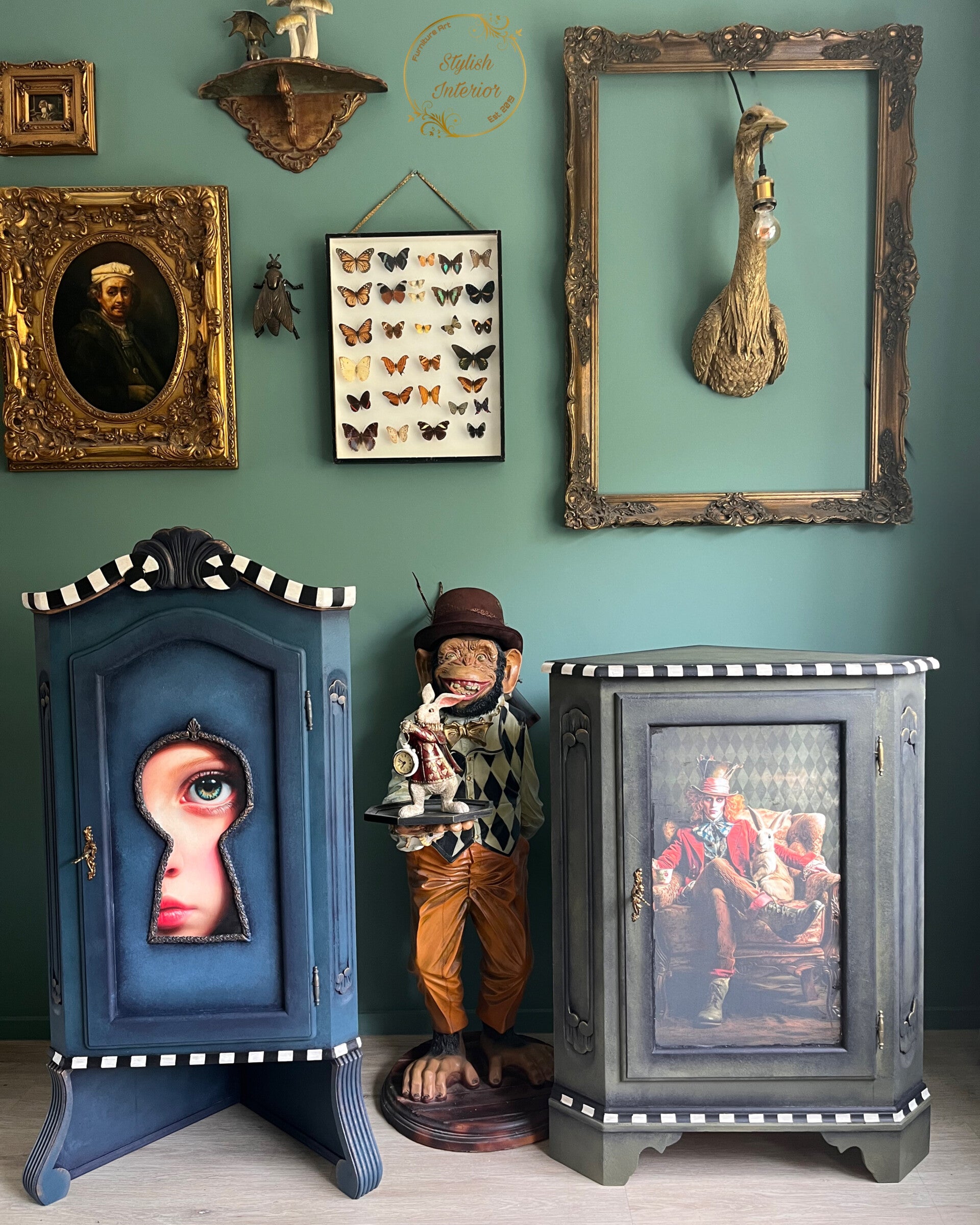 Follow the white rabbit … en je belandt bij deze betoverende hoekkast, rechtstreeks ontsnapt uit een wonderlijke droomwereld.
