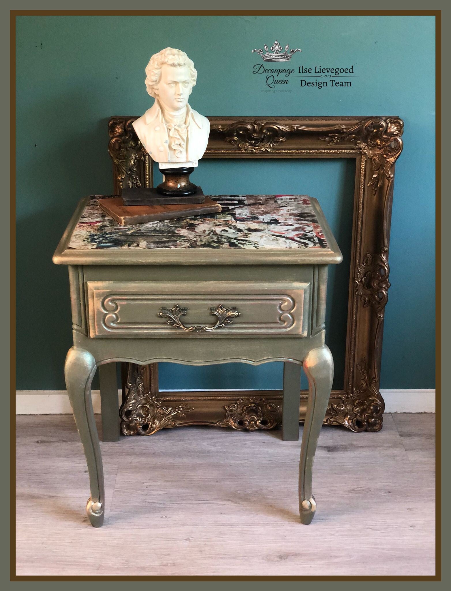 Dit bijzondere art kastje past door de rustige olijfkleur in elk interieur, door de street art prints maakt hij de kamer meteen funcky en apart. De afmetingen zijn H52 xD32 xB43 cm
